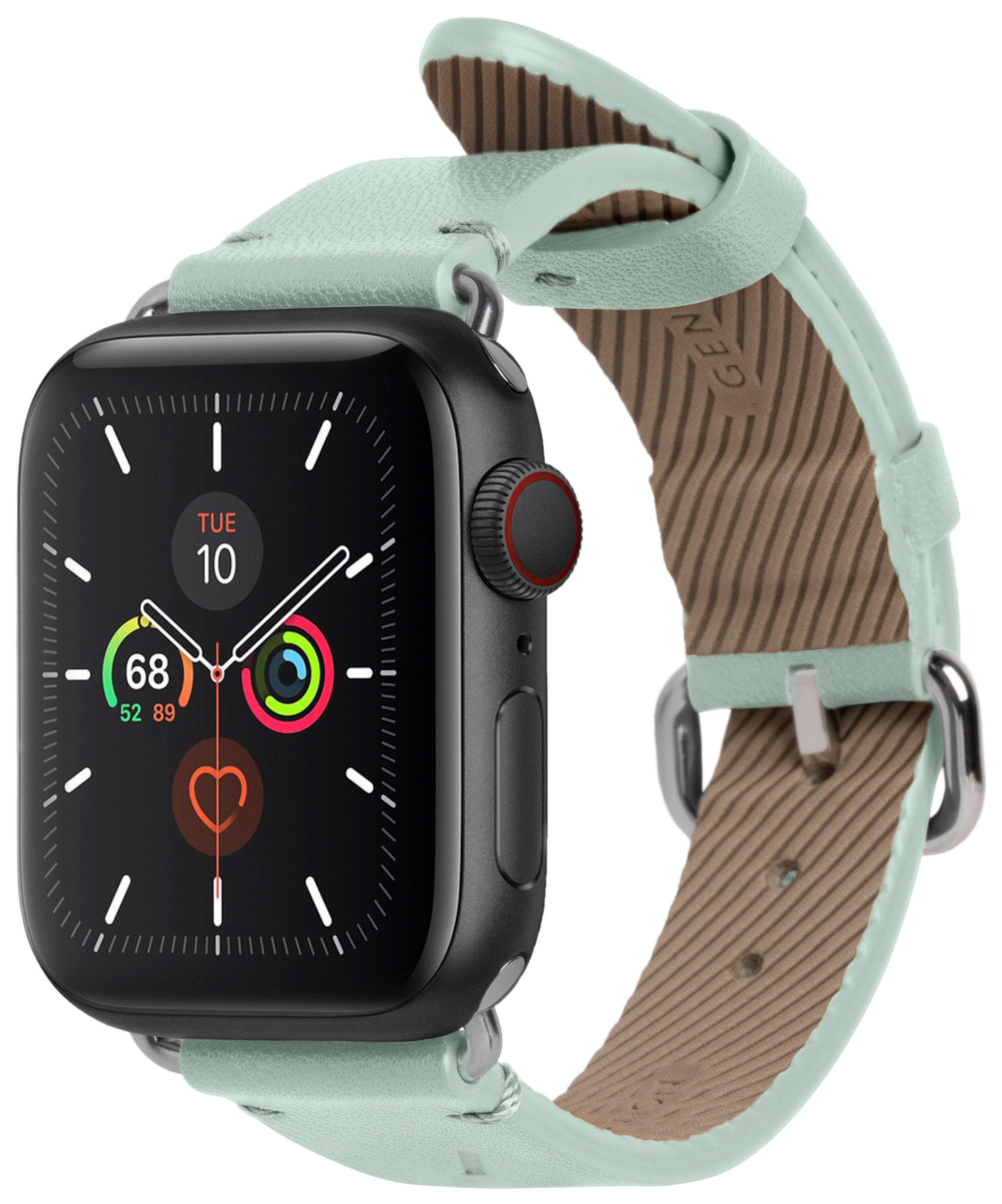 Native Union Classic Strap Sage 38/40/41 mm STRAP-AW-S-GRN on aidosta italialaisesta nahasta valmistettu vaaleanvihreä nahkaranneke Apple Watch -kelloon. Minimalistinen ja ohut ranneke patinoituu ajan kuluessa upean näköiseksi ja uniikiksi kappaleeksi. Rannekkeen solki on valmistettu ruostumattomasta teräksestä. Rannekkeen sisäpuoli on pehmeää nupukkinahkaa eli kellon pitäminen ranteessa pitkiäkin aikoja sujuu vaivattomasti. Rannekkeen pituus on 160 - 215 mm.