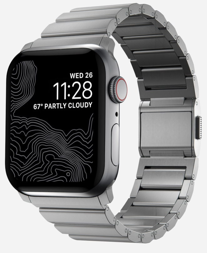 Nomad Steel Band Silver 42/44/45/49 mm NM1A4HSXS0 on hopeanvärinen ranneke, joka on valmistettu 316L kirurginteräksestä. Materiaalina kirurginteräs on todella kestävä. Rannekkeen kiinnitys tapahtuu teräslukolla, joka on todella ohut. Rannekkeessa on yhteensä yli 20 palaa, joista 10 on irrotettavissa. Sen säätäminen oikean mittaiseksi käy helposti. Päivitä Apple Watchiisi uusi ilme helposti Nomad Steel Band NM1A4HSXS0 -rannekkeen avulla!