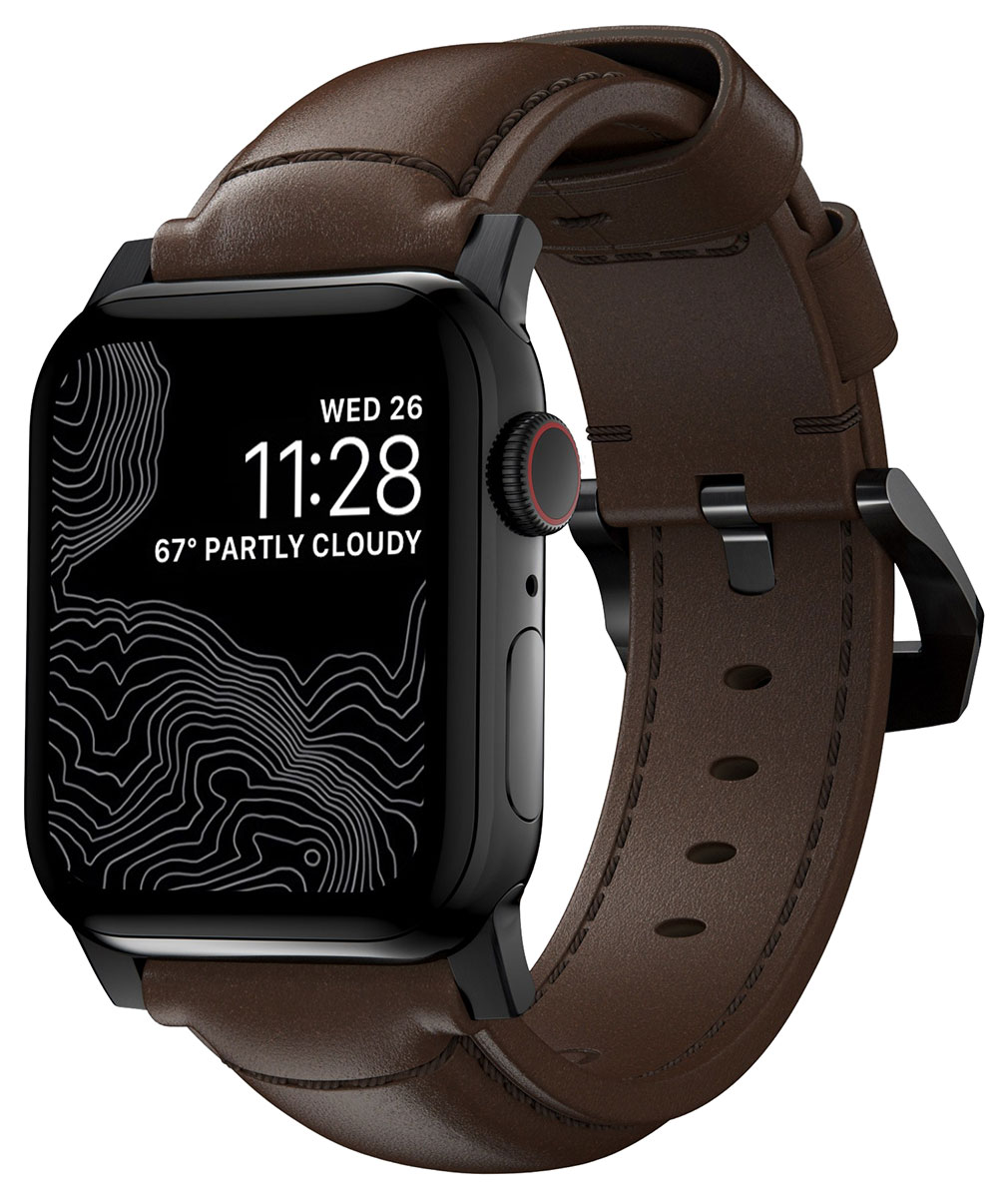 Nomad Traditional Strap Rustic Brown-Black ranneke 42/44/45/49 mm NM1A4RBT00 on ruskea ranneke, joka on valmistettu amerikkalaisesta kasviparkitusta Horween-nahasta. Rannekkeen nahka patinoituu tyylikkäästi vuosien kuluessa. Päivitä Apple Watchiisi uusi ilme helposti Nomad Traditional Strap NM1A4RBT00 -rannekkeen avulla!