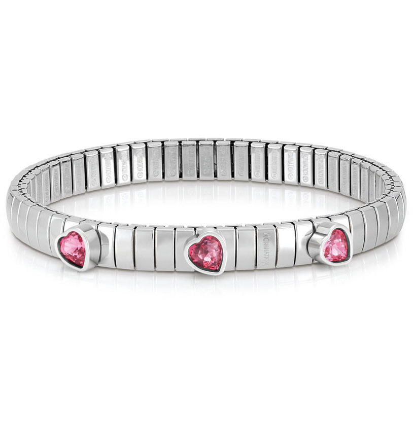 Nomination Love Chic rannekoru 043041/003. Rannekorusta on yksi koko, joka venyy tarvittavaan mittaan. Korussa on Swarovskin roosan värisiä kristalleja. Toimitetaan valmistajan alkuperäisessä lahjarasiassa postikuluitta!