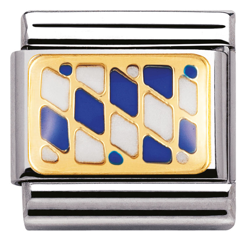 Nomination Bavarian lippu 030234-37. Lippupalat ovat esimerkiksi hauskoja muistoja maista, joissa olet vieraillut tai maista joita rakastat. Nomination palat ovat valmistettu laadukkaasta ruostumattomasta teräksestä ja 18k kullasta. Palojen värikäät kohdat ovat emalia. Nomination paloille myönnetään kahden vuoden takuu ja ne toimitetaan valmistajan alkuperäisessä pakkauksessa.