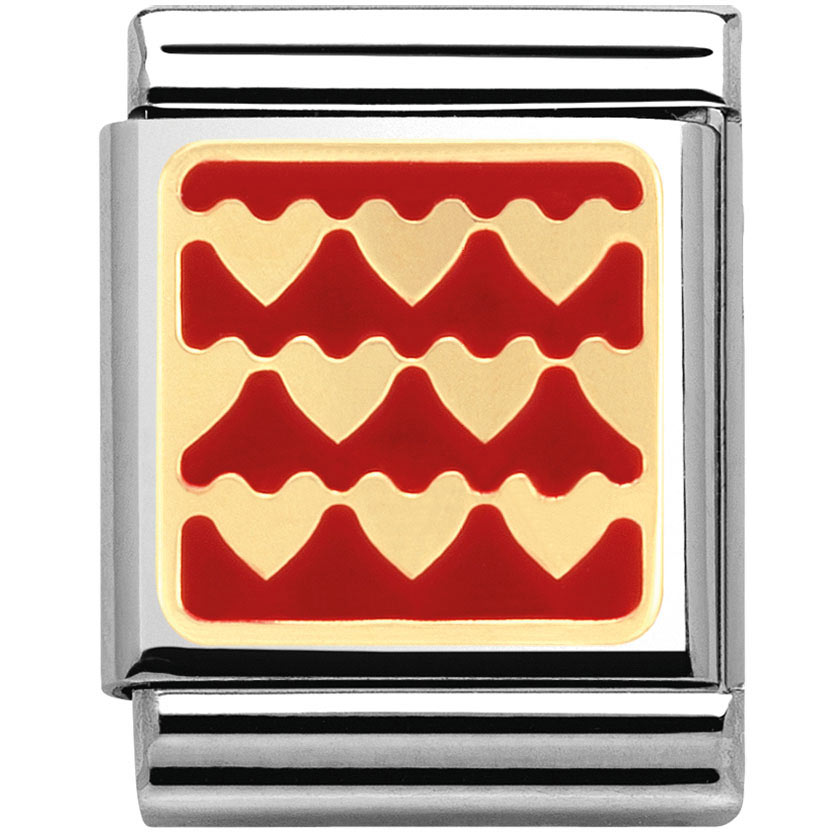 Nomination 032230-36 Big pala on valmistettu laadukkaasta ruostumattomasta teräksestä ja 18k kullasta. Palan värikkäät osat ovat emalia. Nomination paloille myönnetään kahden vuoden takuu, ja ne toimitetaan postikuluitta!