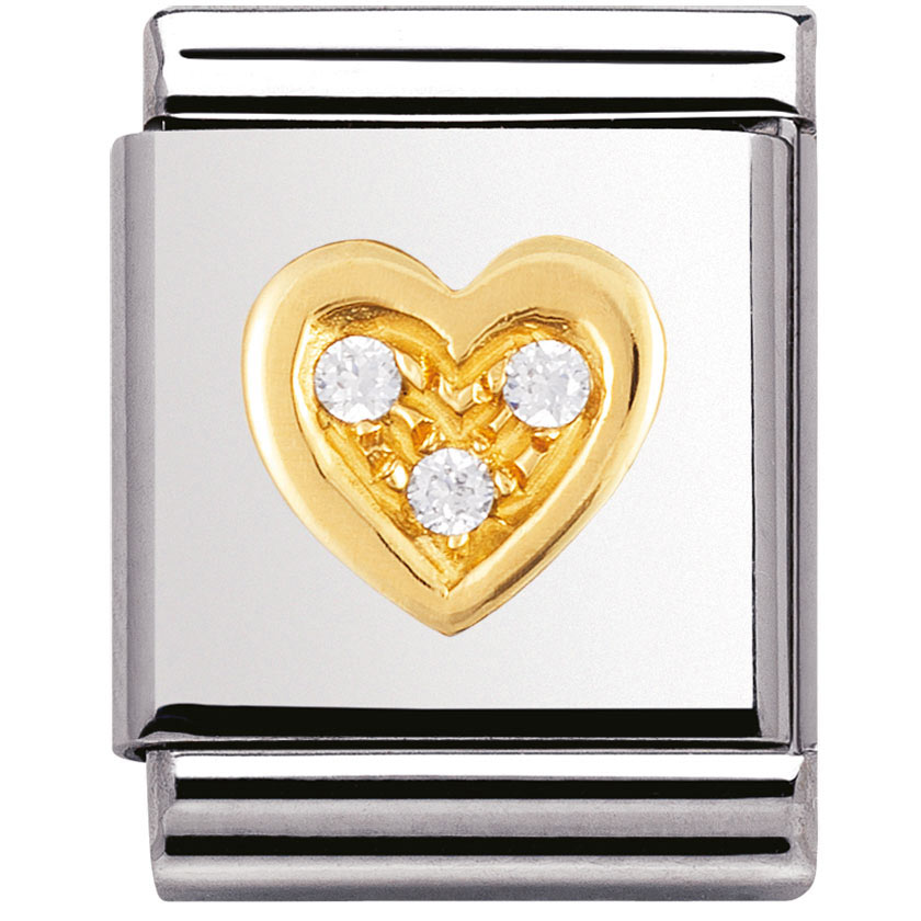 Nomination 032311-11 kivellinen sydän -pala on valmistettu laadukkaasta ruostumattomasta teräksestä ja 18k kullasta. Palaan on upotettu kirkkaita synteettisiä Zirconia korukiviä. Nomination paloille myönnetään kahden vuoden takuu, ja ne toimitetaan postikuluitta!