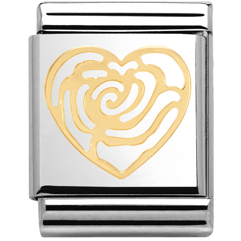 Nomination 032115-13 Big ruususydän pala on valmistettu laadukkaasta ruostumattomasta teräksestä ja 18k kullasta. Nomination paloille myönnetään kahden vuoden takuu, ja ne toimitetaan postikuluitta!