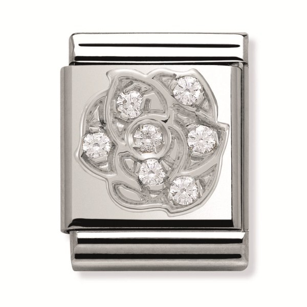 Nomination Big SilverShine ruusu 332310-06. Nomination SilverShine palat on valmistettu laadukkaasta ruostumattomasta teräksestä ja 925-Sterling hopeasta. Palaan on istutettu synteettisiä Zirconia korukiviä. Kaikki Nomination Big palat toimitetaan postikuluitta!