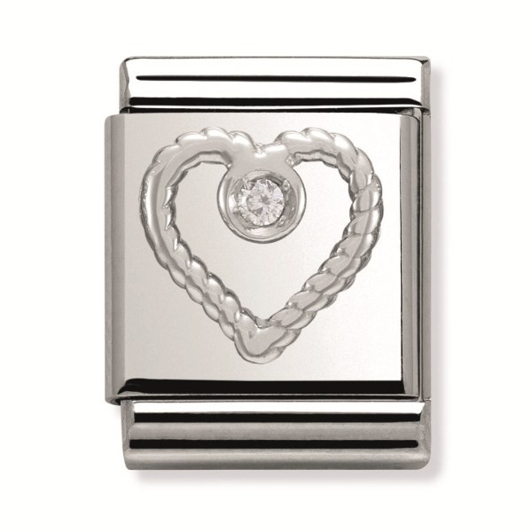Nomination Big SilverShine sydän pala 332304-02. Palaan on istutettu kirkas Zirconia korukivi. Nomination SilverShine palat on valmistettu laadukkaasta ruostumattomasta teräksestä ja 925-Sterling hopeasta. Kaikki Nomination Big palat toimitetaan postikuluitta!