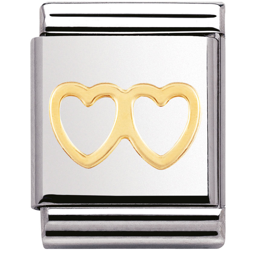 Nomination 032115-03 Big sydämet pala on valmistettu laadukkaasta ruostumattomasta teräksestä ja 18k kullasta. Nomination paloille myönnetään kahden vuoden takuu, ja ne toimitetaan postikuluitta!