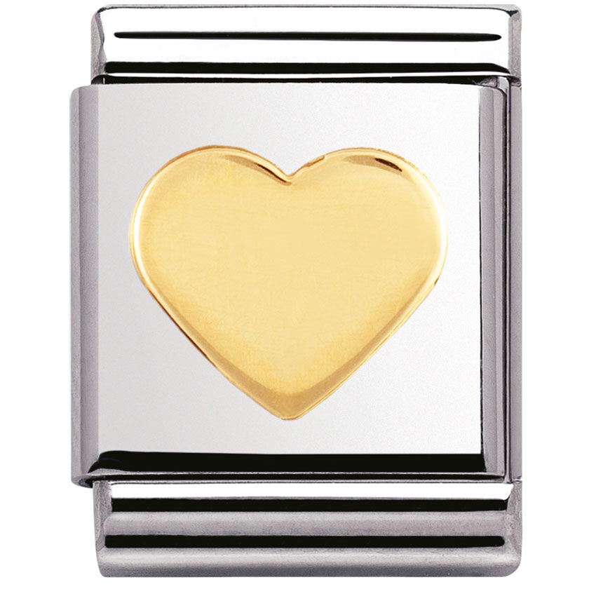 Nomination 032115-02 Big sydänpala on valmistettu laadukkaasta ruostumattomasta teräksestä ja 18k kullasta. Nomination paloille myönnetään kahden vuoden takuu, ja ne toimitetaan postikuluitta!