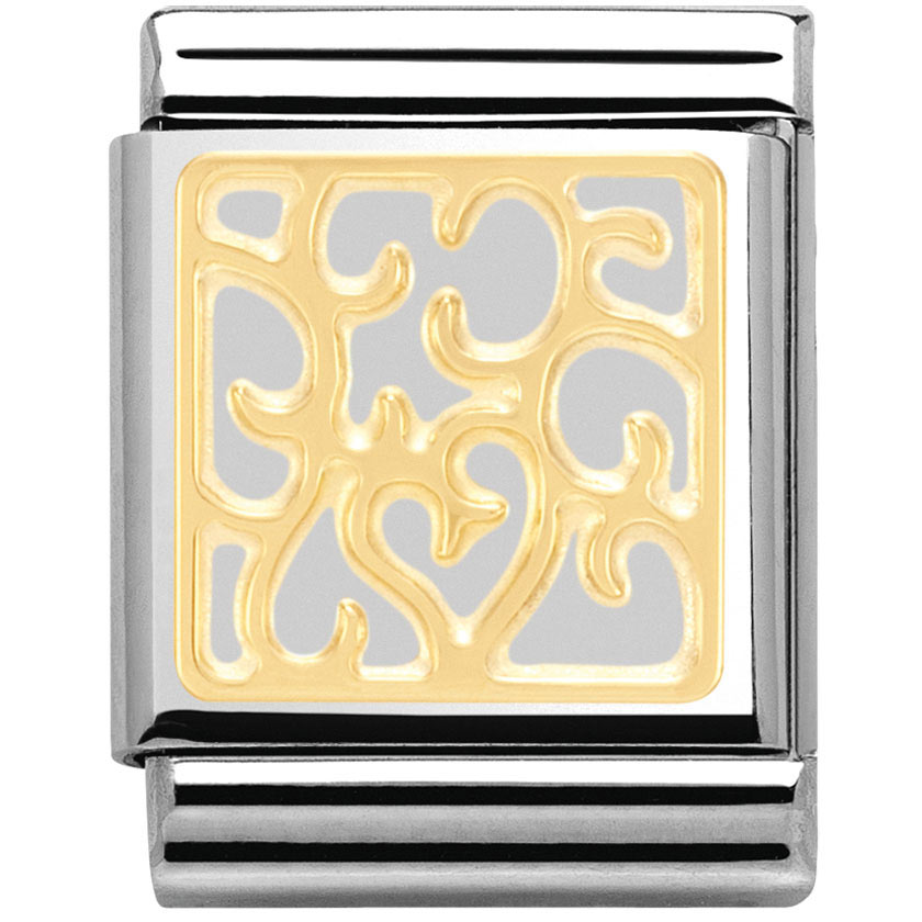 Nomination 032108-18 Big sydänverkko pala on valmistettu laadukkaasta ruostumattomasta teräksestä ja 18k kullasta. Nomination paloille myönnetään kahden vuoden takuu.