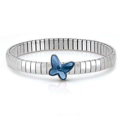 Nomination Butterfly rannekoru 021364/007. Rannekoru on valmistettu ruostumattomasta teräksestä. Rannekoru on yhden koon malli ja venyy tarvittavaan mittaan. Rannekorussa Swarovskin sininen kristalli. Kristalli perhosen leveys 14mm. Toimitetaan valmistajan alkuperäisessä rasiassa postikuluitta!