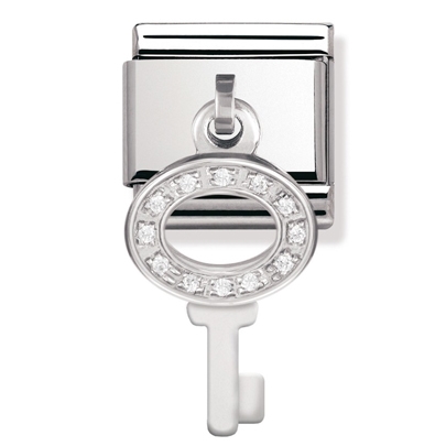 Nomination 031711-14 avain kuuluu Nomination Charms mallistoon. Nomination Charms palat ovat valmistettu laadukkaasta ruostumattomasta teräksestä ja 925-Sterling hopeasta. Palaan on istutettu kirkkaita zirvon korukivia. Nomination paloille myönnetään kahden vuoden takuu ja ne toimitetaan postikuluitta!