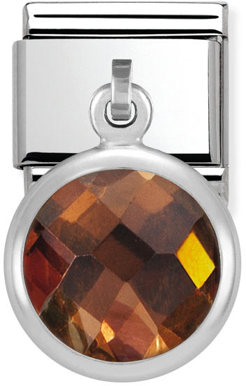 Nomination Charms ruskea Zirconia 031713-012 kuuluu Nomination Charms mallistoon. Nomination Charms palat ovat valmistettu laadukkaasta ruostumattomasta teräksestä ja 925-Sterling hopeasta. Palaan on kiinnitetty synteettinen Zirconia korukivi. Huom! kivi on vaaleampi luonnossa. Nomination paloille myönnetään kahden vuoden takuu ja ne toimitetaan valmistajan alkuperäisessä pakkauksessa.