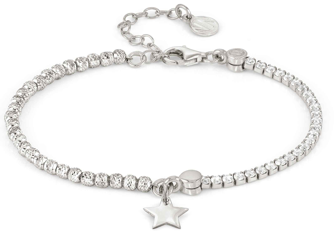 Nomination Chic & Charm 148616/089 on kaunis ja hento rannekoru, jota koristaa kirkkaat, synteettiset zirkoniat ja tähtiriipus. Tämä klassinen rannekoru on hyvä ja aikaa kestävä lisä omaan koruvalikoimaan, ja rannekoru on sterling-hopeaa.Korun pituus on säädettävissä välille 16-20 cm. Riipuksen koko on 0,8 x 0,8 cm. Italialaisilla Nomination-koruilla on 2 vuoden takuu, ja ne toimitetaan valmistajan alkuperäisessä rasiassa.