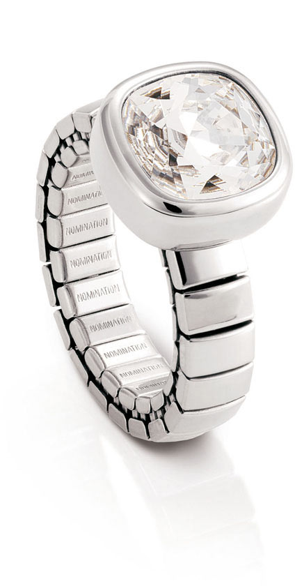 Nomination Chic sormus 043000/010. Sormus on valmistettu ruostumattomasta teräksestä. Sormus on yhden koon malli ja venyy tarvittavaan mittaan. Sormuksessa Swarovskin kirkas kristalli. Toimitetaan valmistajan alkuperäisessä rasiassa postikuluitta!