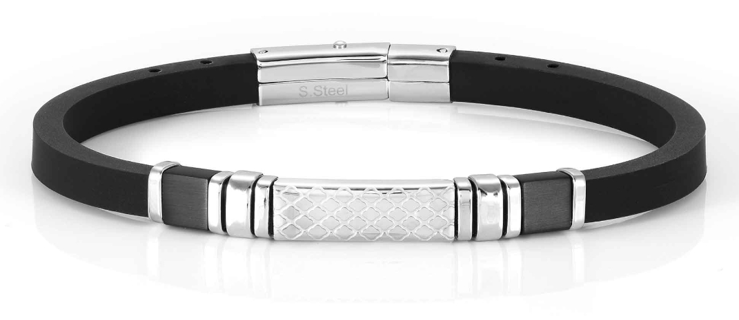 Nomination City on sileä ja moderni korumallisto tyylikästä korua etsivälle. Nomination City rannekoru 028807/001 on valmistettu mustasta kumista, ja korua koristaa teräksiset helat. Tämän miesten rannekorun pituus on säädettävissä välille 19-21 cm. Leveys 0,5 mm. Nomination-korut toimitetaan valmistajan alkuperäisessä pakkauksessa.