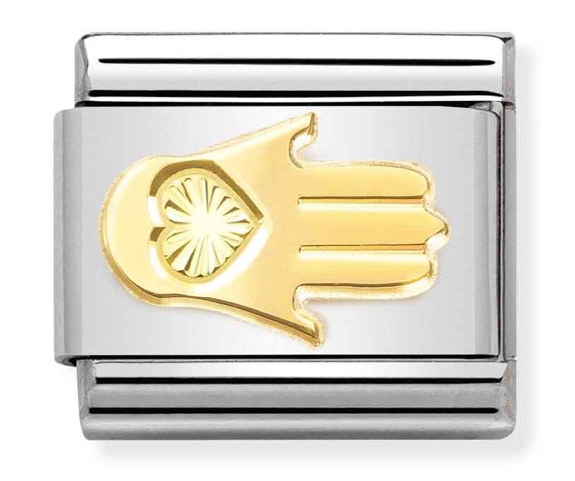Nomination Classic Gold hand pala 030149/47 on koristeltu 18-karaatin kullalla. Pala kiinnitetään Nomination-rannekoruun (myydään erikseen) jousimekanismilla. Paloilla on kahden vuoden takuu.