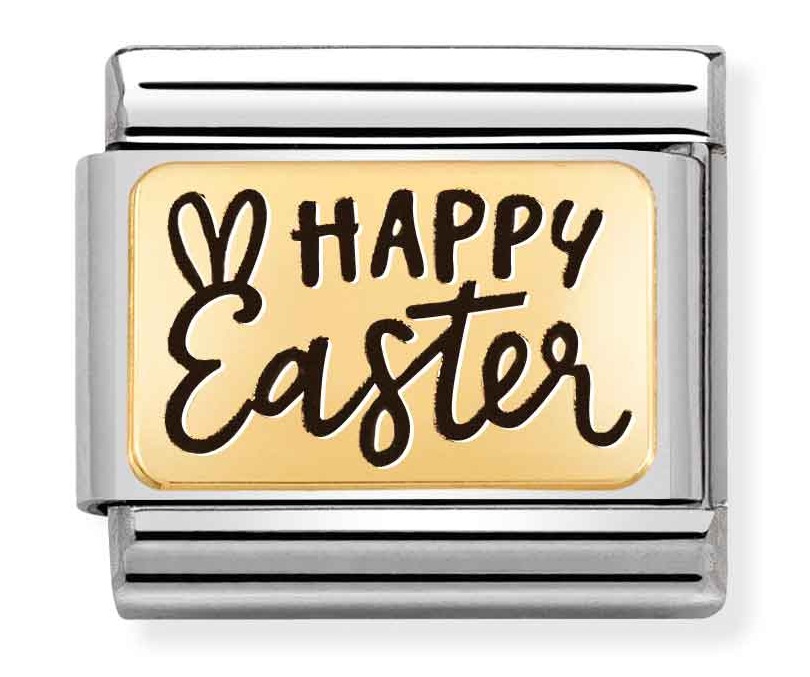 Pääsiäinen on taianomaista aikaa. Silloin luonto herää hiljalleen eloon ja kevät koittaa. Juhlista pääsiäistä tällä Nomination Classic Gold Happy easter palalla 030166/32. Pala kiinnitetään Nomination-rannekoruun (myydään erikseen) jousimekanismilla. Pintaa koristaa 18-karaatin kultaus. Paloilla on kahden vuoden takuu.