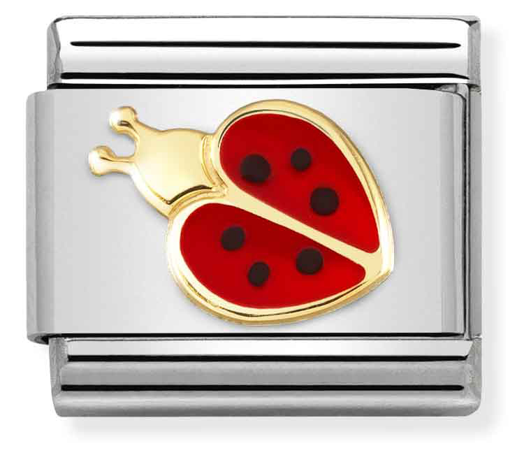 Uudet Nomination Baby collection-korusarjasta löydät useita satuhahmoja ja lapsille sopivia hahmoja. Nomination Classic Gold Ladybug Red 030272/69 -helassa on kuvattuna leppäkerttu. Koru on ruostumatonta terästä ja siinä on 18-karaatin kultaus. Pala kiinnitetään Nomination-rannekoruun (myydään erikseen) jousimekanismilla. Paloilla on kahden vuoden takuu.