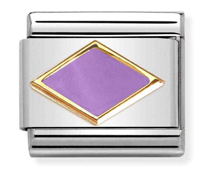 Nomination Classic Gold rhombus-sarjassa on useita värikkäitä paloja, joiden avulla luot juuri sinulle sopivan korun. Värikäs koru on täydellinen valinta kesäkoruksi. Nomination Classic Gold Lilac rhombus pala 030285/50 kiinnitetään Nomination-rannekoruun (myydään erikseen) jousimekanismilla. Korua koristaa emalointi sekä 18-karaatin kultaus. Paloilla on kahden vuoden takuu.