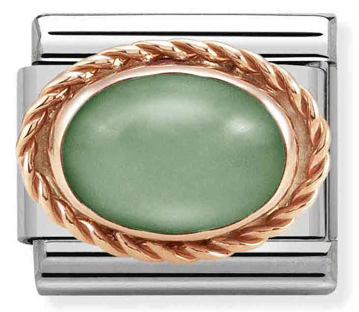 Jokainen meistä on ainutlaatuinen ja tarvitsee ainutlaatuisen korun. Nomination Classic Green aventurine 430507-23-palassa hehkuu haaleanvihreä aventuriini, ja joka on pinnaltaan ja väritykseltään luonnon luoma ja täysin uniikki. Aventuriinia kehystää 9-karaatin ruusukultakehys. Runko on ruostumatonta terästä. Nomination-paloilla on kahden vuoden takuu, ja ne toimitetaan valmistajan alkuperäisessä pakkauksessa.