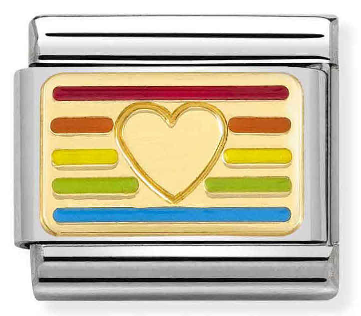 Nomination Classic Rainbow Heart flag 030263-24-hela juhlii monimuoitoisuutta ja rakkautta. Korun pinnassa on 18-karaatin kultaus ja sydämellä koristeltu sateenkaarilippu. Helan runko on ruostumatonta terästä. Italialaisilla Nomination-paloilla on kahden vuoden takuu, ja ne toimitetaan valmistajan alkuperäisessä pakkauksessa.