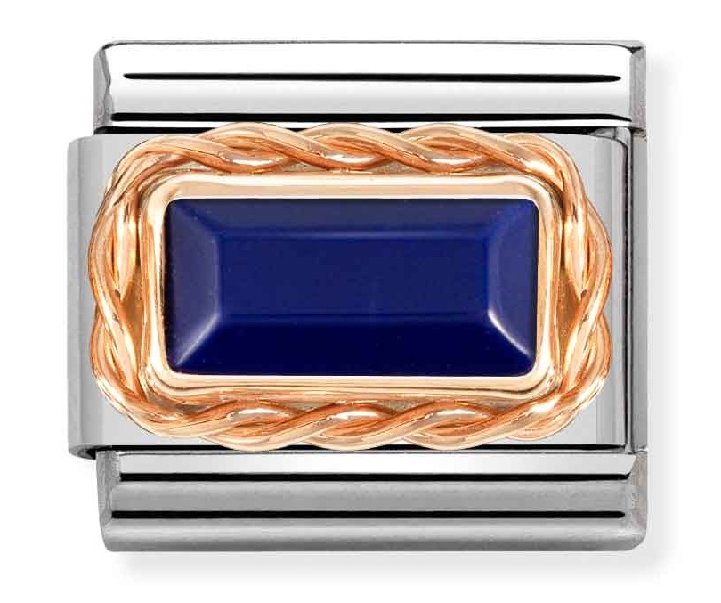 Nomination Classic Rose Gold Buguette Stone Lapis pala 430512/09 on täydellinen lisä Nomination-rannekkeeseen. Tämä klassinen korukivi kiinnitetään Nomination-rannekoruun (myydään erikseen) jousimekanismilla. Sinistä lapis latzulia ympäröi 9-karaatin ruusukultaus. Paloilla on kahden vuoden takuu.