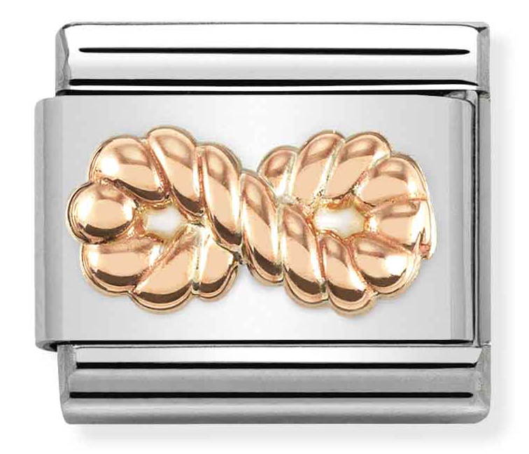 Nomination-helojen ja palojen avulla on helppo luoda juuri sinulle sopiva rannekoru. Nomination Classic Rose Gold Infinity Textured 430106/24 -korussa on ikuisuussymboli symboloiden kahden ihmisen ikuista yhteyttä. Koru on ruostumatonta terästä ja 9-karaatin ruusukultaa. Pala kiinnitetään Nomination-rannekoruun (myydään erikseen) jousimekanismilla. Paloilla on kahden vuoden takuu.