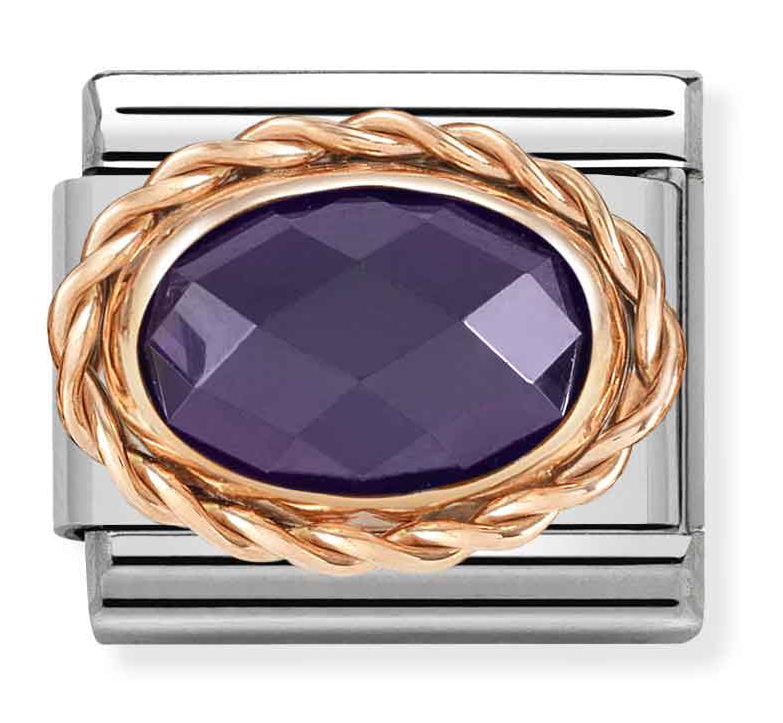 Nomination Classic Rose Gold ovaali zirkonia violetti 430603/001-kivihelassa on kaunis viistehiottu pinta ja värikäs zirkonia. Kiveä reunastaa ruusukullattu kehys. Runko on ruostumatonta terästä. Italialaisilla Nomination-paloilla on kahden vuoden takuu, ja ne toimitetaan valmistajan alkuperäisessä pakkauksessa.