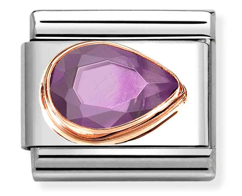 Nomination Classic rose gold right drop purple cz 430606/001 korussa kimaltaa kaunis, lila pisaranmallinen kivi 18-karaatin rusuukultaisessa kehyksessä. Riipus kiinnitetään Nomination-rannekoruun (myydään erikseen) jousimekanismilla. Ota yksi tai kerää vaikka kaikki, ja luo juuri sinulle sopiva rannekoru. Nomination-paloilla on kahden vuoden takuu.