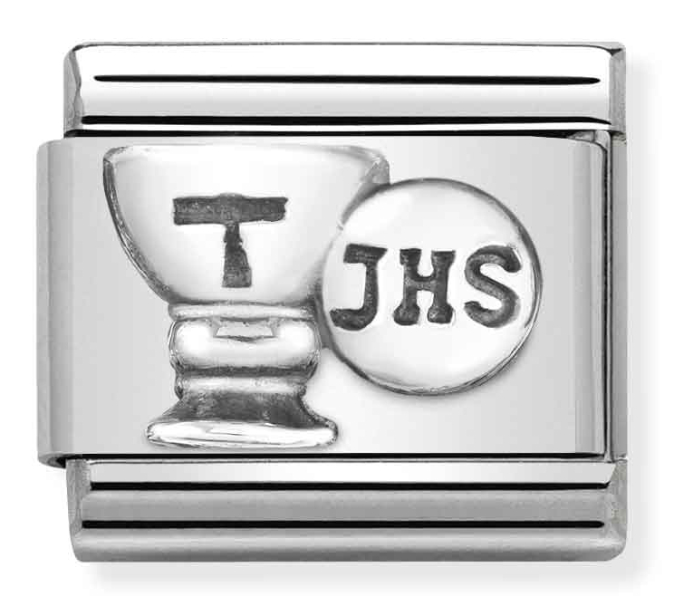 Nomination Classic Silvershine Chalice and Host 330101/50 kuvaa ehtoollismaljaa ja ensimmäistä ehtoollista. Koru on hieno lahja esimerkiksi tuoreelle kriparilaiselle. Nomination-palat on ruostumatonta terästä ja sterling-hopeaa, ja se kiinnitetään Nomination-rannekoruun (myydään erikseen) jousimekanismilla. Paloilla on kahden vuoden takuu.