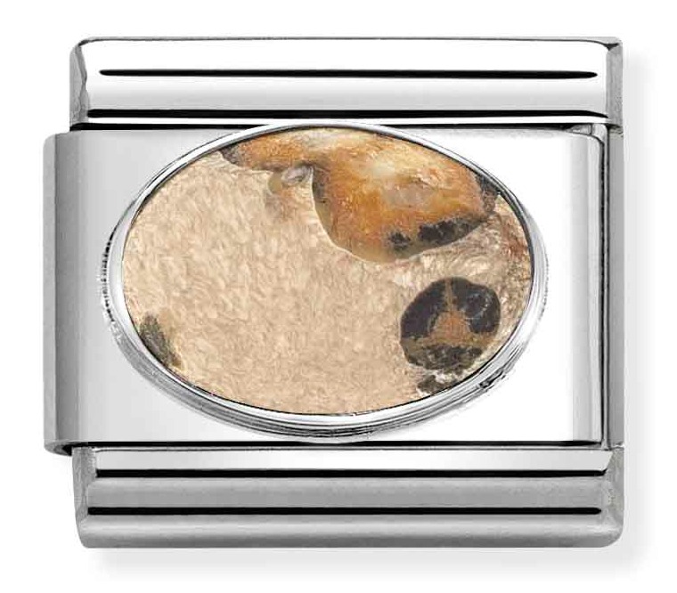 Nomination Classic Silvershine hard stones leopard jasper mat 330510/46 korussa on jaspis sterling-hopeisessa kehyksessä. Koru kiinnitetään Nomination-rannekoruun (myydään erikseen) jousimekanismilla. Runko on ruostumatonta terästä. Huomioithan, että jokaisessa kivessä kuviointi on erilainen johtuen kiven luonteesta. Ota yksi tai kerää vaikka kaikki, ja luo juuri sinulle sopiva rannekoru. Nomination-paloilla on kahden vuoden takuu.
