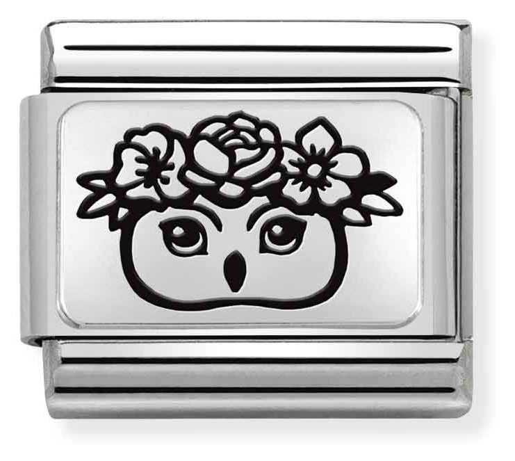 Nomination Classic Silvershine Owl Flowers 330111/30-helassa on kuvattuna pöllö. Korun pinta on koristeltu sterling-hopealla, ja runko on ruostumatonta terästä. Italialaisilla Nomination-paloilla on kahden vuoden takuu, ja ne toimitetaan valmistajan alkuperäisessä pakkauksessa.