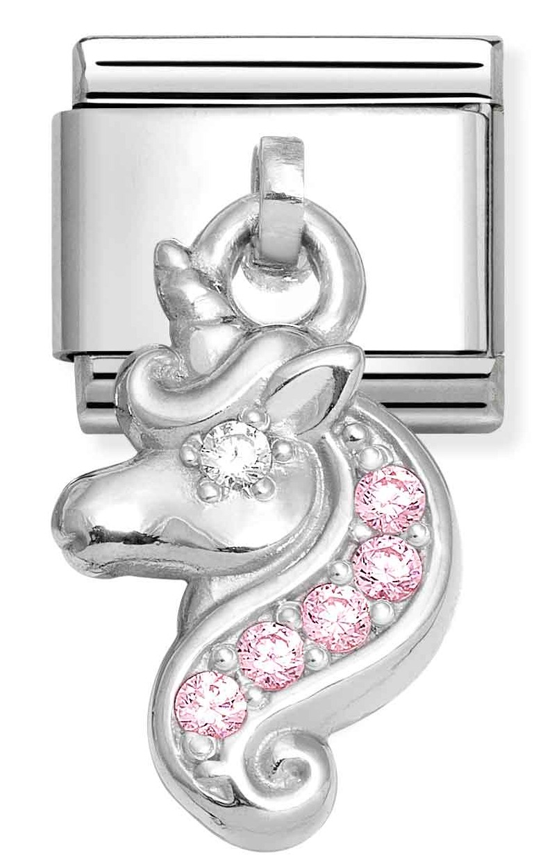 Nomination Classic Silvershine pink unicorn 331800/36 yksisarvinen on koristeltu sterling-hopealla ja vaaleanpunaisilla, synteettisillä zirkonioilla. Yksisarviskoru kiinnitetään Nomination-rannekoruun (myydään erikseen) jousimekanismilla. Ota yksi tai kerää vaikka kaikki, ja luo juuri sinulle sopiva rannekoru. Nomination-paloilla on kahden vuoden takuu.