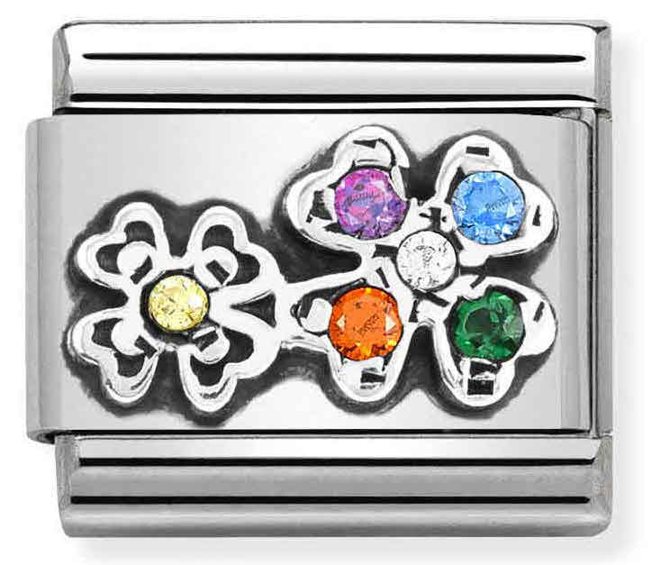Neliapila tuo kantajalleen onnea. Nomination Classic SilverShine Symbols Four-leaf clover rainbow 330323-04 sterling-hopeista neliapilahelaa koristaa moniväriset zirkoniat, ja helan runko on valmistettu ruostumattomasta teräksestä. Nomination-paloilla on kahden vuoden takuu, ja ne toimitetaan valmistajan alkuperäisessä pakkauksessa.