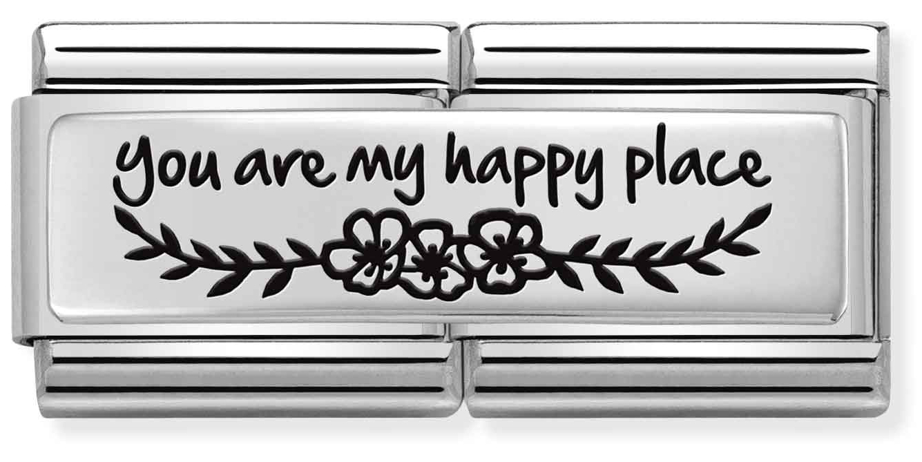 Nomination Classic Silveshine Double You are my happy place 330711/06-hela ihana lisä omaan Nomination-rannekkeeseen. Korun pinta on koristeltu sterling-hopealla, ja runko on ruostumatonta terästä. Italialaisilla Nomination-paloilla on kahden vuoden takuu, ja ne toimitetaan valmistajan alkuperäisessä pakkauksessa.