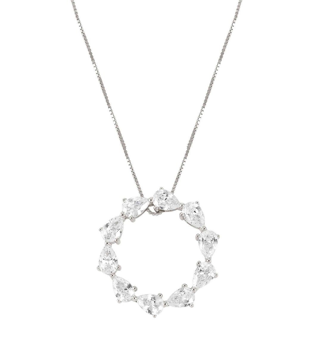 Nomination Color Wave silver white kaulakoru 149812/001 on kaunis hopeakaulakoru, jota koristaa kranssiriipus. Riipuksen pintaa koristaa pisaranmalliset, synteettiset zirkoniat antaen korulle ylellisen ja ajattoman ilmeen. Koru on valmistettu sterling-hopeasta, ja pinnan rodinointi estää hopean tummumisen. Ketjun pituus on säädettävissä 40-46 cm pituuteen, ja riipuksen halkaisija on 2,5 cm. Italialaiset Nomination-korut toimitetaan valmistajan alkuperäisessä rasiassa