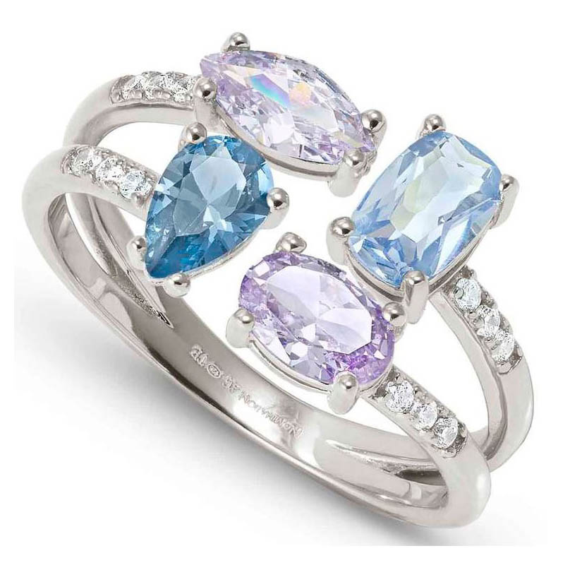 Nomination Colour Wave Aurora Edition 149850/010 neljän kiven sormus on valmistettu 925 sterling-hopeasta. Sormukseen on istutettu erimuotoiset sinisen ja violetin väriset zirkoniat tuomaan lisähohtoa korulle. Italialaiset Nomination-korut toimitetaan valmistajan kauniissa rasiassa.