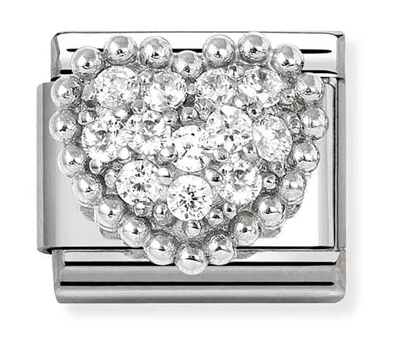 Nomination Composable cl rich white dot heart 330322/07 helassa on näyttävä sydän, jonka sisäosa koostuu monista kirkkaista zirkonioista. Hela on valmistettu oksidoidusta 925-sterling hopeasta ja ruostumattomasta teräksestä. Hela on kooltaan 0,9 x 1 cm. Italialaisilla Nomination-paloilla on kahden vuoden takuu, ja ne toimitetaan valmistajan alkuperäisessä pakkauksessa.
