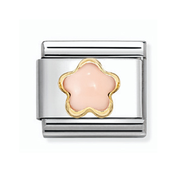 Lisää Nomination-rannekoruusi herkkää naisellisuutta ja romanttista tyyliä tällä kauniilla pinkillä kukkalla. Composable Classic -sarjan pala on valmistettu ensiluokkaisesta ruostumattomasta teräksestä, ja sen keskiössä hehkuu aito 18 karaatin kultakehys, joka ympäröi pehmeän vaaleanpunaista synteettistä koraalia.