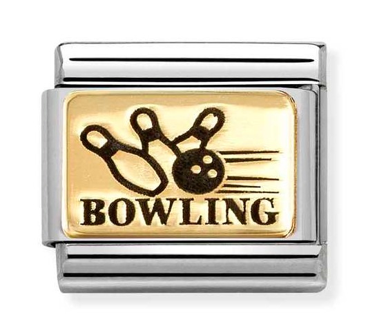 Nomination Composable Classic Plates classic gold Bowling 030166/57 keilakoru on valmistettu ruostumattomasta teräksestä, ja korussa on 18-karaatin kultaus, ja emalointi. Helan koko on 0,7 x 1 cm. Italialaisilla Nomination-paloilla on kahden vuoden takuu, ja ne toimitetaan valmistajan alkuperäisessä pakkauksessa.