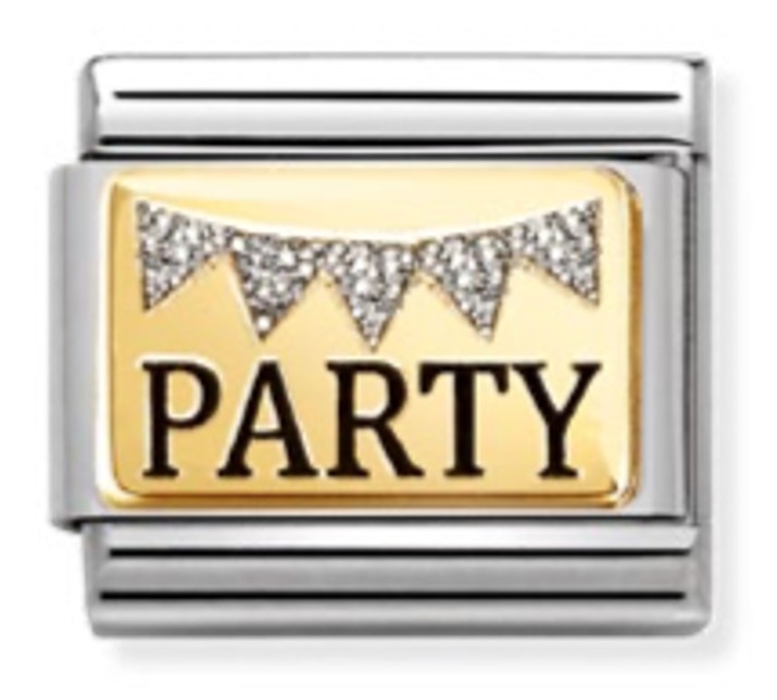 Nomination Composable Classic Plates classic gold Party Glitter 030289/09 on valmistettu ruostumattomasta teräksestä, ja korussa on 18-karaatin kultaus., glitter emalointi Helan koko on 0,7 x 1 cm. Italialaisilla Nomination-paloilla on kahden vuoden takuu, ja ne toimitetaan valmistajan alkuperäisessä pakkauksessa.