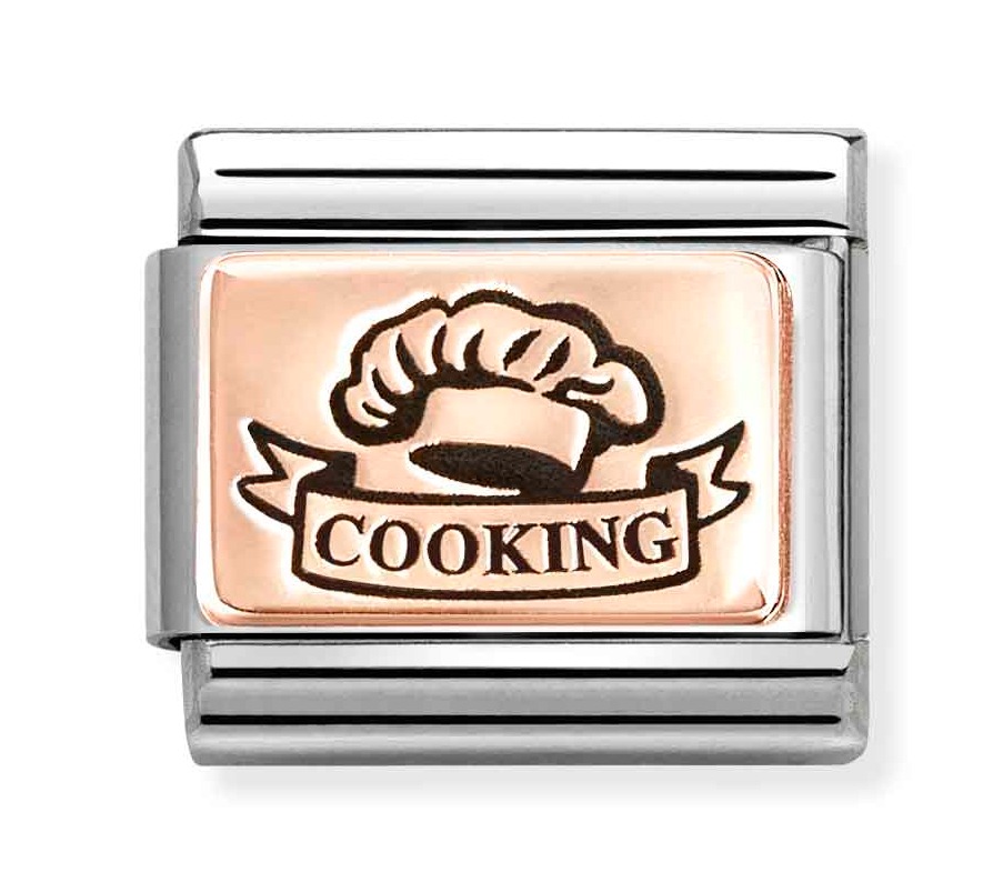 Nomination Composable Classic Rose gold plates Cooking 430111/25 on viimeistely 18-karaatin ruusukullalla. Koru kiinnitetään Nomination-rannekoruun (myydään erikseen) jousimekanismilla. Ota yksi tai kerää vaikka kaikki, ja luo juuri sinulle sopiva rannekoru. Nomination-paloilla on kahden vuoden takuu.