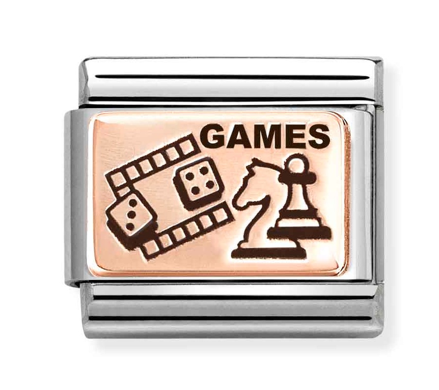 Nomination Composable Classic Rose gold plates Table games 430111/22 on viimeistely 18-karaatin ruusukullalla. Koru kiinnitetään Nomination-rannekoruun (myydään erikseen) jousimekanismilla. Ota yksi tai kerää vaikka kaikki, ja luo juuri sinulle sopiva rannekoru. Nomination-paloilla on kahden vuoden takuu.