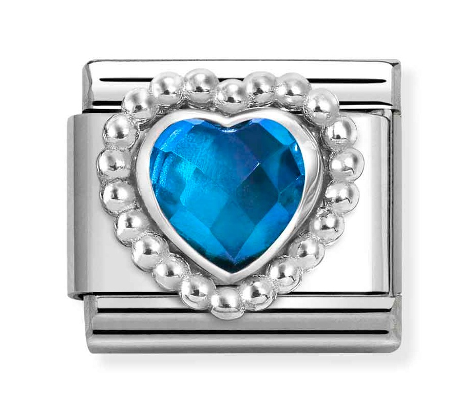 Nomination Composable Classic Silvershine faceted stones heart with Dots rich setting BLUE 330605/007-sydänkorua koristaa sininen kivi. Koru kiinnitetään Nomination-rannekoruun (myydään erikseen). Ota yksi tai kerää vaikka kaikki, ja luo juuri sinulle sopiva rannekoru. Paloilla on kahden vuoden takuu.