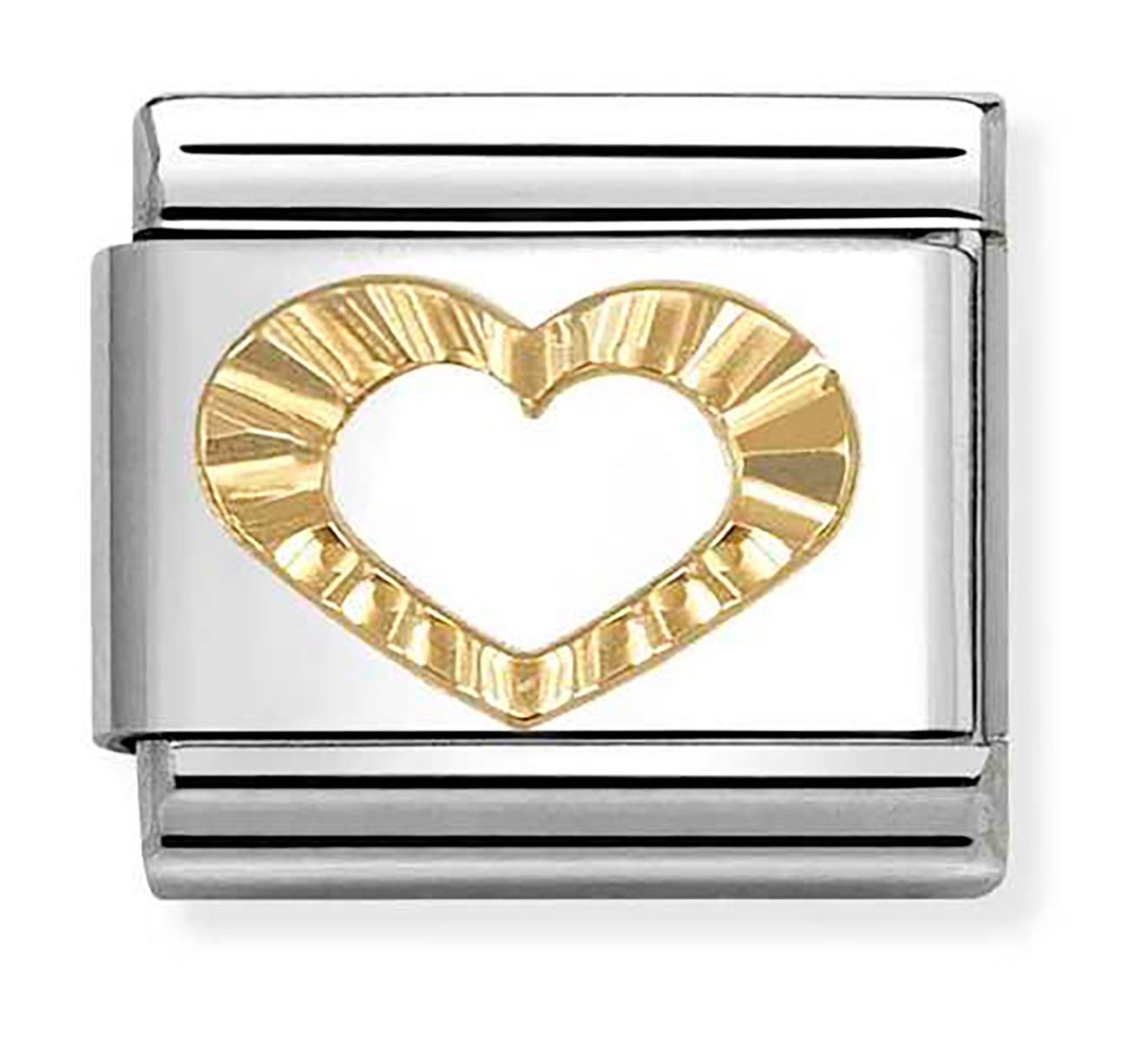 Nomination Composable Classic Symbols Sydän 030149/63 -korun pinta on koristeltu 18-karaatin kullalla ja sen runko on ruostumatonta terästä. Palassa on ihastuttava kullattu sydän. Koko: 0,7 x 1 cm. Italialaisilla Nomination-paloilla on kahden vuoden takuu, ja ne toimitetaan valmistajan alkuperäisessä pakkauksessa.