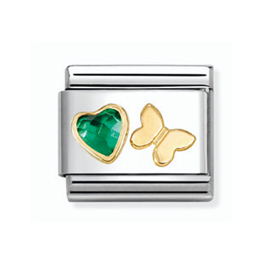 Nomination Composable Classic vihreä zirkoniasydän ja perhonen pala kulta 030613/15