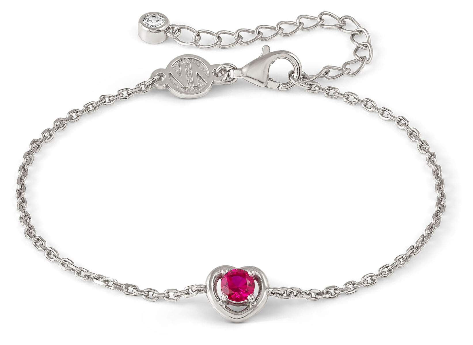 Nomination Cosmic Love punainen sydänrannekoru 241704/006 on valmistettu rodinoidusta sterling-hopeasta. Rodinointi antaa korulle kestävän kiillon, ja estää hopeaa tummumasta. Kokonaisuuden kruunaa punainen, synteettinen zirkonia sydänkehän keskellä. Korun pituus on 19 cm, ja säätöväli on 15-19 cm. Sydämen koko on 0,76 x 0,72 cm. Italialaiset Nomination-korut toimitetaan valmistajan kauniissa rasiassa.