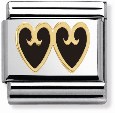 Nomination 030279-16, Elegance emaloidut mustat sydämet. Pala kuuluu tyylikkääseen Nomination Elegance sarjaan. Nomination palat ovat valmistettu laadukkaasta ruostumattomasta teräksestä ja 18k kullasta. Palojen värikäät kohdat ovat emalia. Nomination paloille myönnetään kahden vuoden takuu ja ne toimitetaan postikuluitta!