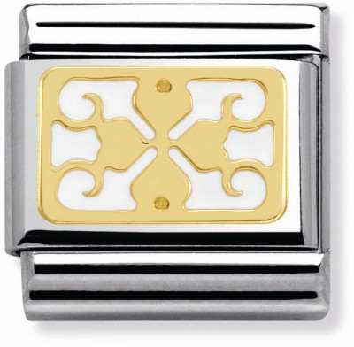 Nomination 030280-15, Elegance. Pala kuuluu tyylikkääseen Nomination Elegance sarjaan. Nomination palat ovat valmistettu laadukkaasta ruostumattomasta teräksestä ja 18k kullasta. Palojen värikäät kohdat ovat valkoista emalia. Nomination paloille myönnetään kahden vuoden takuu ja ne toimitetaan postikuluitta!