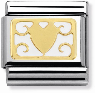Nomination 030280-16, Elegance. Pala kuuluu tyylikkääseen Nomination Elegance sarjaan. Nomination palat ovat valmistettu laadukkaasta ruostumattomasta teräksestä ja 18k kullasta. Palojen värikäät kohdat ovat valkoista emalia. Nomination paloille myönnetään kahden vuoden takuu ja ne toimitetaan valmistajan omassa rasiassa.
